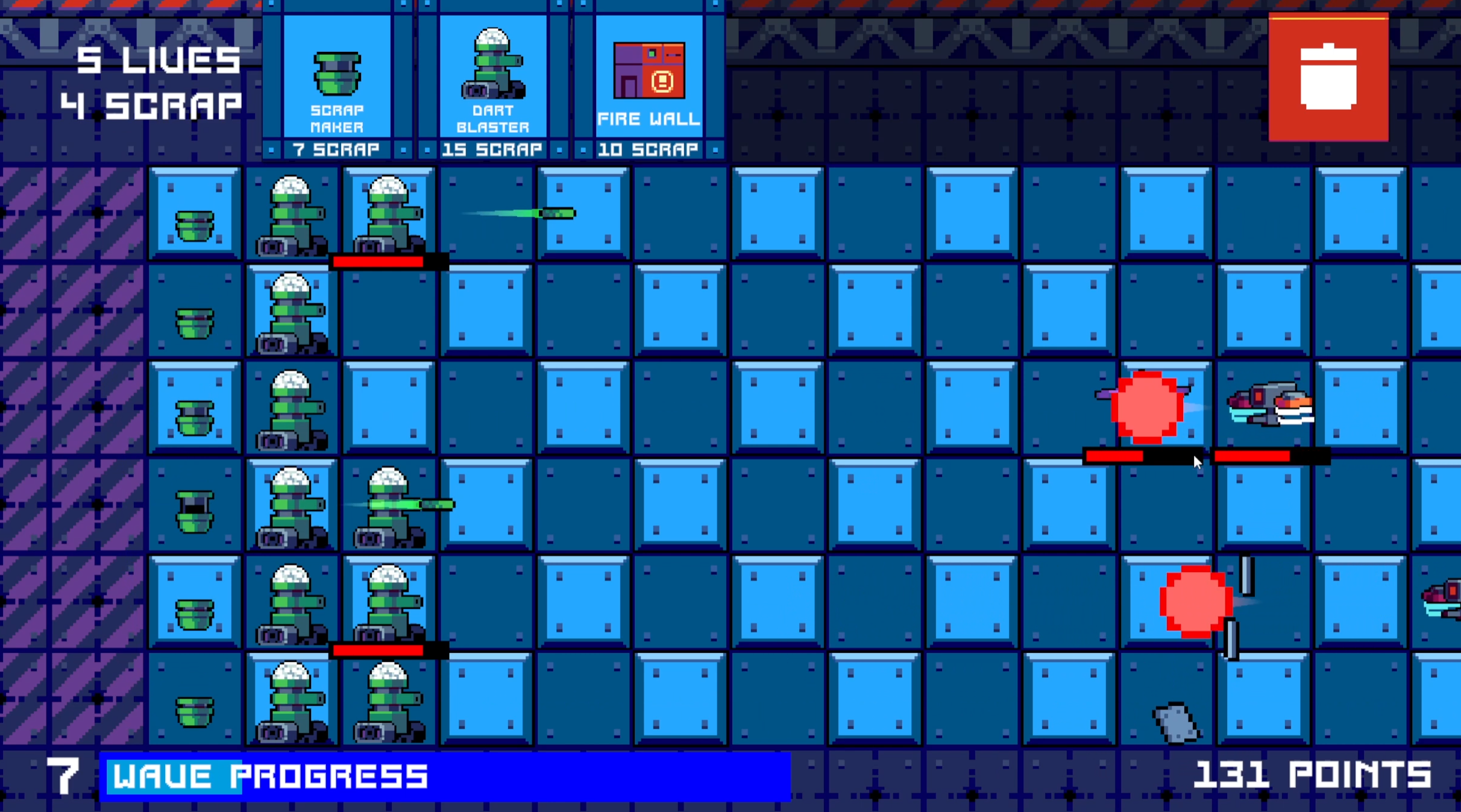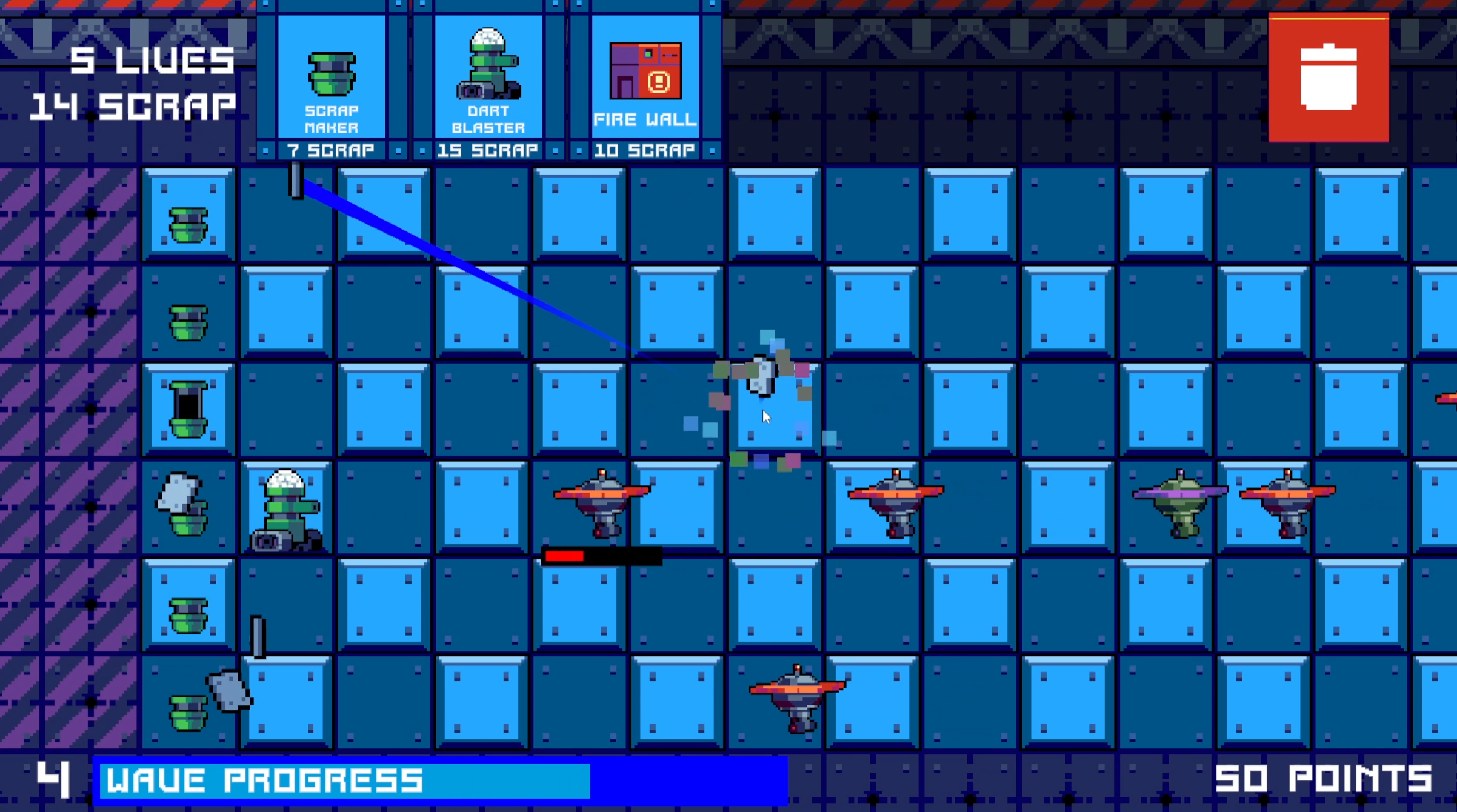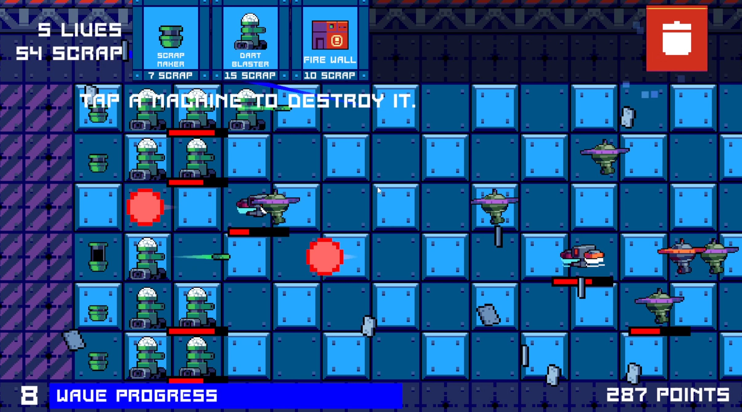 - Use the trash can icon to destroy placed friendly drones